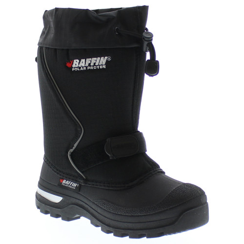 Description The Baffin Mustang Features: Temperature Rating: -40ºC/-40ºF Liner: Removable, Baffin multi-layer inner boot system Base: Arctic Rubber Locking snow collar Ankle height Velcro strap for fastening Rip-stop nylon upper