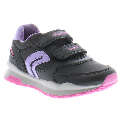 Created to suit any look, Pavel is the ultimate solution for adventuresome days on the move. With a black upper adorned with detailing in pink and dark gray, this sneaker has been crafted from a leather-effect material and nylon and boasts a running-shoe design. The double velcro strap closure allows it to be readily slipped on and makes it totally adjustable. The durable TR outsole not only ensures flexibility, lightness and an effective grip, it has also been enhanced with our exclusive Geox-patented system for breathability. Last but not least, the removable footbed provides hygiene and practicality.