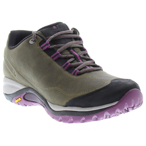 This leather trail shoe is designed around the unique shape of a woman's foot and features an extremely sticky Vibram® sole for traction even when it's wet.
