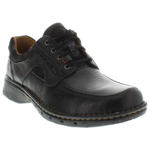 Stay ultra-comfortable with the Clarks Un.Bend oxford. This men's casual shoe features a premium full grain leather upper with four-eyelet lacing. A removable leather insole offers support and comfort, while the soft leather lining prevents irritation. A flexible EVA sole with rubber pads reduces foot fatigue while it provides traction. Part of the Unstructured collection, the Clarks Un.Bend slip-on features the Clarks Air Circulation System: intake vents allow cool, fresh air to enter the shoe and channeled mesh creates a defined path for warm, moist air to escape through exhaust vents.