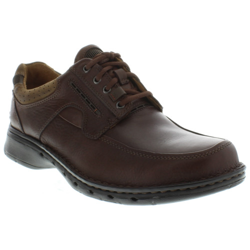 Stay ultra-comfortable with the Clarks Un.Bend oxford. This men's casual shoe features a premium full grain leather upper with four-eyelet lacing. A removable leather insole offers support and comfort, while the soft leather lining prevents irritation. A flexible EVA sole with rubber pads reduces foot fatigue while it provides traction. Part of the Unstructured collection, the Clarks Un.Bend slip-on features the Clarks Air Circulation System: intake vents allow cool, fresh air to enter the shoe and channeled mesh creates a defined path for warm, moist air to escape through exhaust vents.