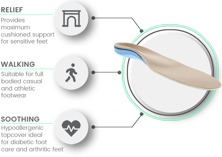 - Pain relief: Sensitive skin, ulceration, or lack of sensation in the feet